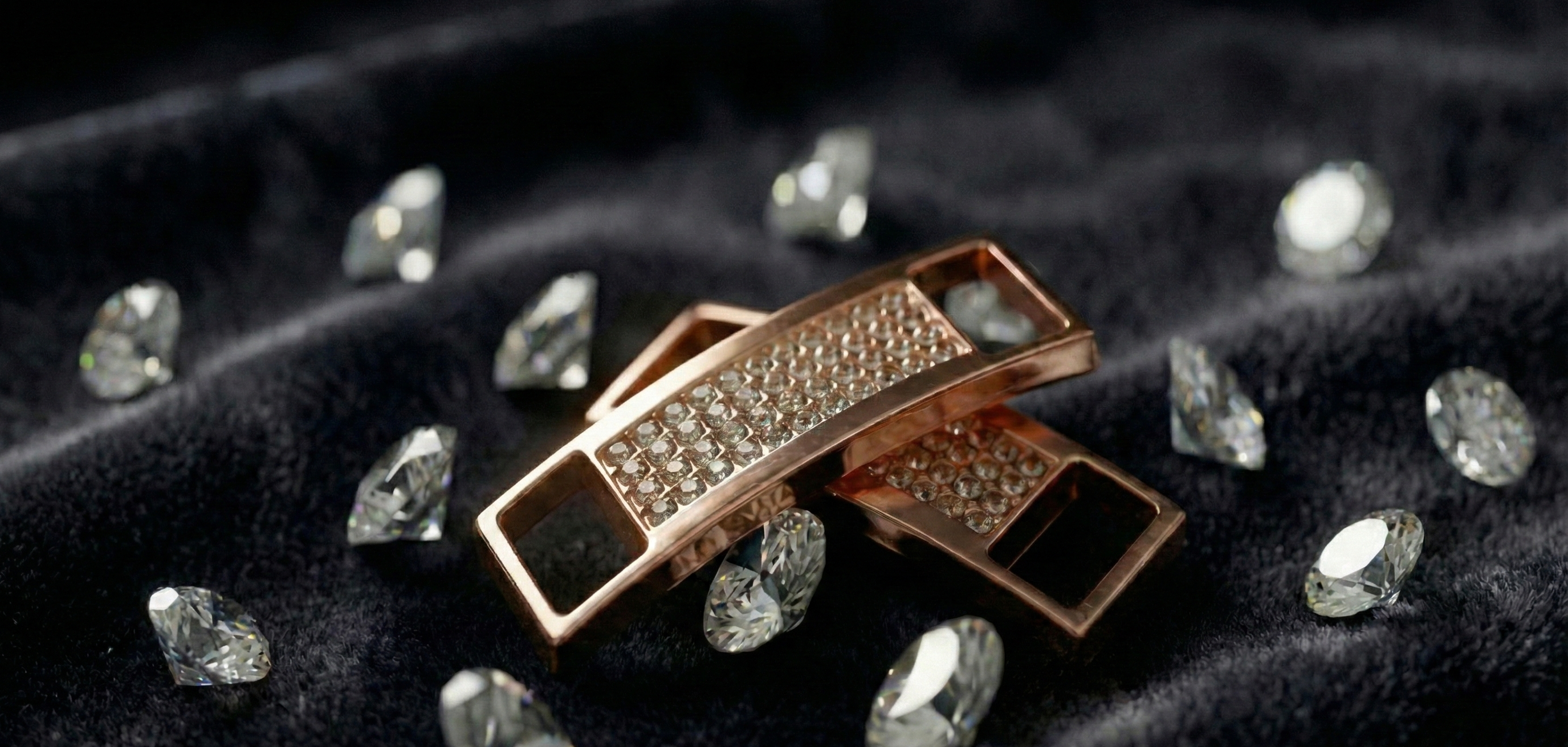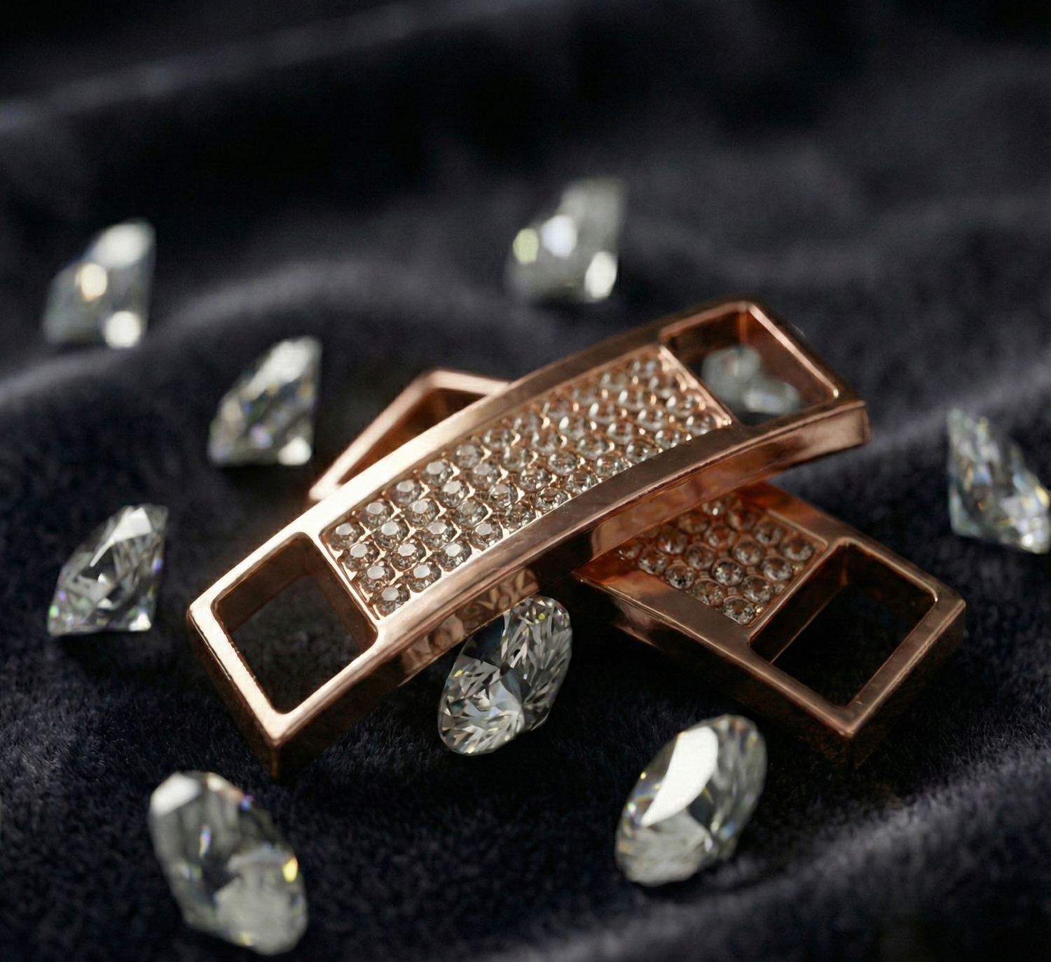Veredelt mit funkelnden Kristallen in einer edlen Roségold-Fassung. Dieses Detail zieht alle Blicke auf sich und verleiht jedem Schritt einen unwiderstehlichen Hauch von Glamour.